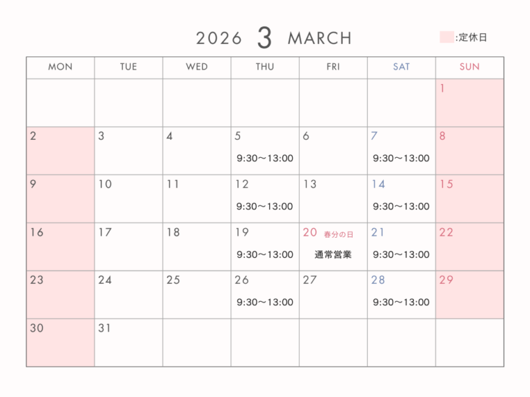 【3月の営業日程】春分の日も通常営業|季節の変わり目に体調管理を
